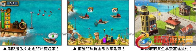 渔业大亨是一款典型的模拟经营游戏,主角李奥为了帮助渔村重建,于是找了合伙人帮忙一起复兴整个渔港的经济。游戏中必须先收集汽油,吸引附近的渔船进来港口,利益交换让这些渔船队伍帮你捕鱼,再把得来的渔获拿去转卖成木材,赚取的利润就可以拿去重建鱼村了,快来挑战看看你是否能成为雄霸一方的渔业大亨!