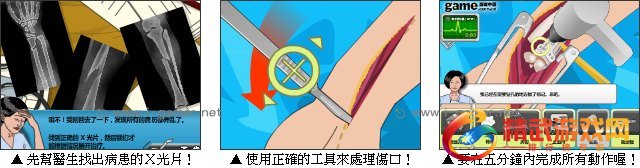 医院来了一位手臂骨折的重伤病患,身为一位专业的外科医生,你必须想办法做急救处理并且动手术才可以过关喔。按照提示完成步骤,并在时间内对患部进行一场手术,这样才有办法抢救病人的性命喔!
