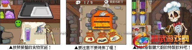 恐怖的骷髅也要在地狱开餐厅啰,他的食物和饮料都是自己亲自调配的独家秘方,可口美味又带点奇特的餐点是否可以吸引很多顾客上门捧场呢?快来帮助骷髅大叔经营这家餐厅吧!提醒玩家们烤制食品要注意火候,时间太久食物会被烤焦,这样可是很浪费的。
