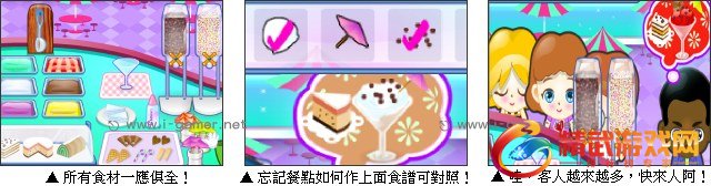 游戏操作:以滑鼠操作进行游戏,根据顾客需求点击画面下方的配料制作冰淇淋。