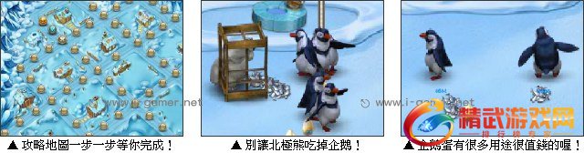 谁说农场不能盖在冰河上,开心农场冰河版,正式疯狂启动!主角离开了阳光和温暖的天气,来到了极地旅行。当抵达极地之时,发现在极地也是能发展农场的,只不过饲养的对象改变了,改成照顾企鹅或其他极地动物,而且还可以开发新产品呢。玩家们快来极地养企鹅作农场主人吧!
