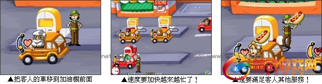 高速加油站的豪华版,较原版增加了很多设施,游戏中客人把车开进来之后用滑鼠操作把车子拖曳到加油机的旁边,接着就可以帮他加油啰,有的客人会提出其他不同的服务像是汽车修理、餐饮服务、洗车等等,都要快速的完成他们的要求喔,过关后可以升级你的加油站,让它变的越来越豪华。