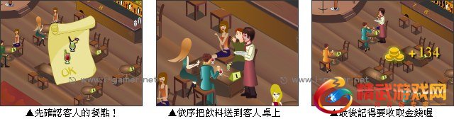 这边新开了一间浪漫咖啡屋,但是目前只有一位服务生,客人进来后要先帮他们带位,接着等他们点完饮料要马上按确认,饮料做完后会放在吧檯,在送到客人的桌上就完成啰,要注意别客人等太久,不然他们可是会生气走人的!