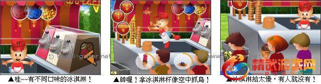 可爱的 Baby 在渡假区开起了冰淇淋小卖店,有许多不同口味的冰淇淋喔。游戏中 Baby 的各种动作都相当生动逗趣,但是生意好的时候会有些手忙脚乱的,在这样的热天气下客人的耐心可是有限的,玩家们快来帮帮他,在客人离开之前将他需要的做冰淇淋做好交给他哦!