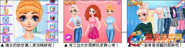 游戏操作:以滑鼠操作进行游戏,左键点击化妆品、服装、饰品为女孩们装扮。