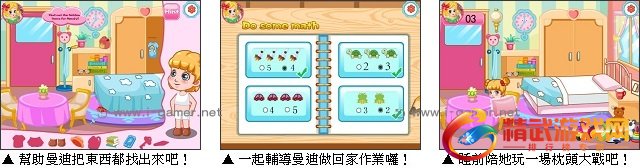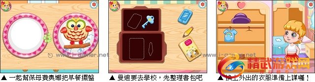 游戏中,玩家们要教会曼迪自己穿衣服,整理自己的书包,放学后还要辅导曼迪写作业给她做好晚饭,最后呢还得需要玩家帮忙一起跟曼迪玩睡前游戏,哄睡她呢!一起来体验当个小小保母的感觉吧!会很有成就感的唷!