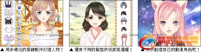 动漫里的少女除了有清秀的五官还有丰富的表情,每一位角色都散发着独特美感,玩家们喜欢什么样子的人物呢?赶快到游戏里创造一个吧。游戏中有各式各样的素材可以挑选,无论是五官、表情及服装饰品都可以任由玩家的喜好进行搭配。快来发挥想像力打造属于自己的动漫角色吧!