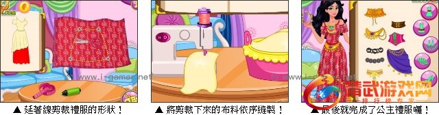 游戏操作:以滑鼠操作进行游戏,点击道具制作公主礼服。