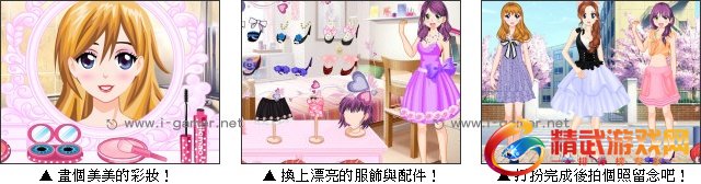 游戏操作:以滑鼠操作进行游戏,帮女孩们打扮。