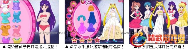 在无数少女中造成轰动的美少女战士推出装扮游戏啰!印象中的美少女战士总是穿着水手服铲奸除恶,玩家是否对于她们穿着日常服装感到好奇呢?这款游戏将满足你的好奇心,游戏中不只提供一贯的水手服,也推出许多礼服与便服款式让玩家选择,喜爱美少女战士的玩家快来重温儿时的经典回忆,搭配出独一无二的新造型吧!