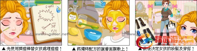 今天女孩原本要去参加朋友的派对,但是她突然在一夜之间冒出许多痘痘,让我们一起来帮助她吧!玩家首先要先进行清洁脸部的保养、去除痘疤等动作,让女孩恢复白皙脸孔之后,依照自己喜好来画上脸部妆容,最后帮她搭配合适的服装就大功告成了喔,大家赶紧帮她好好地保养、梳妆打扮一番吧!
