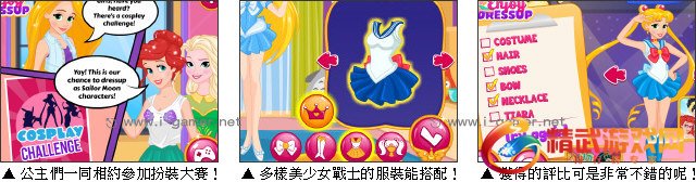 这天迪士尼公主们在路上发现一张 Cosplay 大赛的宣传海报,姊妹们觉得非常有趣,于是便相约一起前去参加比赛!公主们思前想后要扮演的角色,最后讨论出要扮演她们心中的女英雄「美少女战士」!在所有服装、配件都准备完成后,接下来就是做一番改造啰!还等什么?现在就让我们赶快和迪士尼公主们来一起参与这场 Cosplay 的装扮竞赛吧!