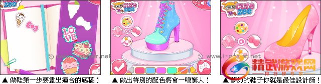 游戏操作:以滑鼠操作进行游戏,点击道具来设计制作漂亮的凯蒂猫高跟鞋。