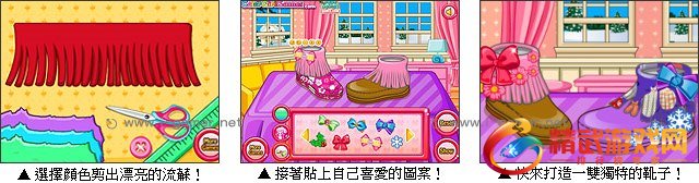 今年春天将开始流行流苏的设计,女孩们都需要一双漂亮的流苏靴来作服装上的搭配,现在玩家有机会打造出属于自己的时尚靴子,游戏中有两款不同的鞋款可作选择,接着自行在鞋面上进行颜色搭配与饰品装饰,快来发挥你的创意,制作一双专属于你的时尚流苏靴吧!