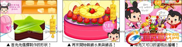 这是一款超Q的蛋糕制作游戏,大厨师是我们可爱的大头妹,她准备许多材料来做蛋糕,有可口的水果与饼乾当材料,还有各式各样可爱的装饰品,可以依照你的喜好制作蛋糕口味及样式,快来发挥你的创意制作出一个漂亮的蛋糕吧!