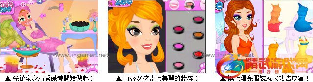 游戏操作:以键盘方向键操作移动,滑鼠点选饰品给人物美容打扮。