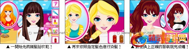 游戏操作:以滑鼠操作进行游戏,点选道具为女孩美发。