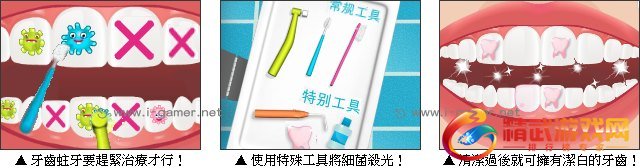 芭比牙科诊所是专门治疗牙齿出问题的病人,如果你是一个经常爱吃零食又不刷牙的人,那么你就应该到牙科诊所来检查一下牙齿的状况啰。游戏中以可爱的画风不仅减去传统可怕看牙的印象之外,还可从游戏中认识到不同清洁用品的功用,适时注意牙齿的保健,你就可以拥有一口美丽的牙齿喔!