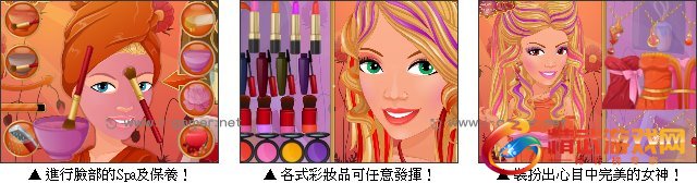 游戏操作:以滑鼠操作相关道具、饰品、服饰给人物美容打扮,完成后点击 DONE 进行展示。