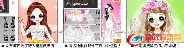 每个女孩最期待的莫过于举办一场完美的婚礼,为了呈现最美好的一面,每个地方可都不能马虎。在游戏中,你扮演的是可爱女孩的造型师,快来帮紧张的她打造一个全新的造型,让她成为全场的焦点吧!点击墙面可以变换不同样式的背景喔!