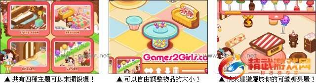 可爱糖果屋里有许多由糖果所组成的家具喔,每个场景的家具和装饰品还可以自由调整大小和位置,还有许多可爱又甜美的女孩陪你一起欢乐呢,快来可爱糖果屋摆设专属于你的梦幻小屋吧!