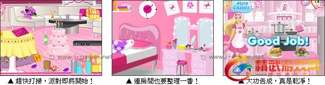 游戏操作:以滑鼠键操作进行游戏,点击物品放回正确的位置,垃圾打扫乾净。