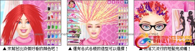 游戏操作:以滑鼠操作进行游戏,点击道具为芭比美发。
