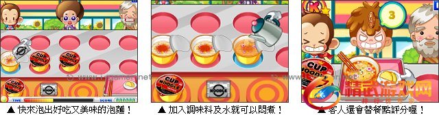 小美的海鲜泡面店开张啰,许多的客人慕名而来,快来为客人们送上美味的餐点吧。先将泡面放在檯子上,加入调味料及开水就可以开始闷煮,煮好后就能放入餐盘端给客人享用,切记可别煮太久,客人可是会替你的泡面做评分的唷!