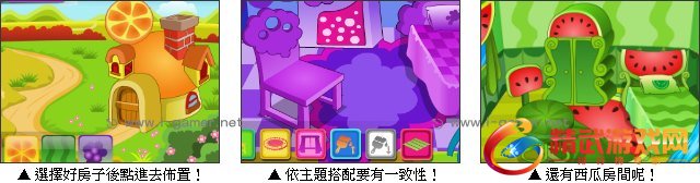 新鲜的水果吃起来甜蜜爽口,不知住在水果屋里感觉如何?亲手打造可爱水果屋,房子里的装潢和家具都是由水果做成的,挑选一个喜欢的水果,点击进去布置房间,完成一间可爱的水果屋吧!