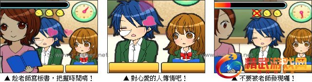 上课时间好无聊喔,班上有一位帅哥不上课,整堂课都在打瞌睡。快点来对他传情,谈一场恋爱吧!利用老师写黑板时,趁机对帅哥传情,要记得把握时间唷!