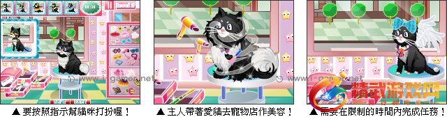 主人要带小猫咪出去玩啰,在出发前要先把小猫咪给打扮地漂漂亮亮才行。游戏共分为两种模式,一种是根据游戏指示,点击衣服及首饰等饰品装扮小猫咪,但这模式有时间限制喔。另一种则是自由模式,玩家可以任意地装扮心爱的小猫咪,把牠打扮成专属于你的小宠物喔!