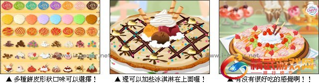 游戏操作:以滑鼠操作进行游戏,点选适合的配料来制作美味的霜淇淋比萨。