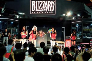 Blizzard三大游戏联展不受昨日台风影响,吸引大批死忠玩家驻足,台北应用展间由可爱俏皮熊猫小师妹以超萌的开场舞蹈秀热闹揭幕,随后台语歌王施文彬扮演一日店长并揭开典藏版拍卖序幕。