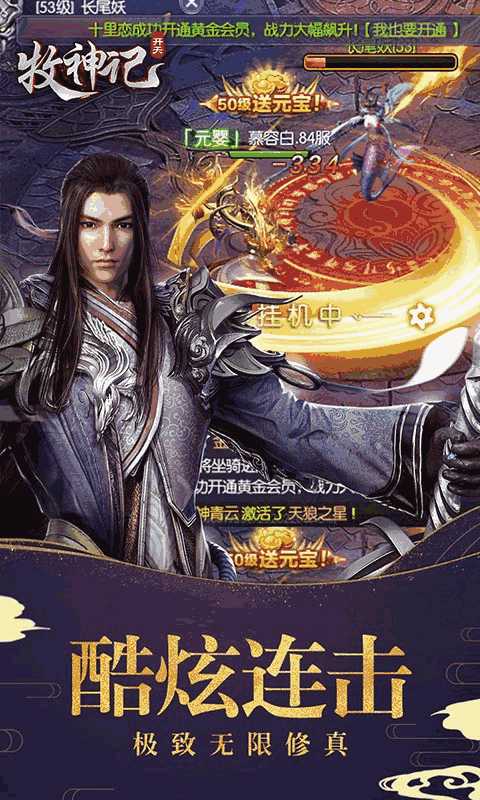 1.上线赠送至尊VIP,元宝88888,金币1028万(创建新角色就有)