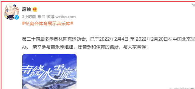在2月11日《原神》官方发布公告介绍:原神音乐入选2022年北京冬奥会曲库