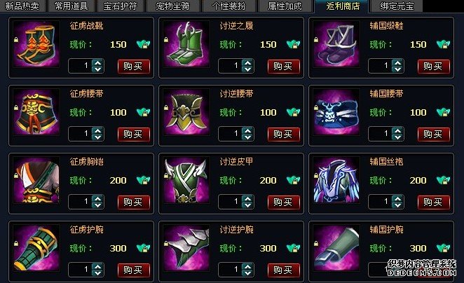 活动内容:在开服前三天,每充值10元宝可以获得1个返利积分,通过返利积分可在商城的返利商店购买30级橙装和其他珍惜道具,集齐一套橙色套装可获得属性加成和人物发光特效哦!!三天后返利商店将会自动关闭并且清除返利积分。