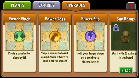 这是三种用金币购买,玩家亲手杀死/弹飞/电气僵尸的方式。
