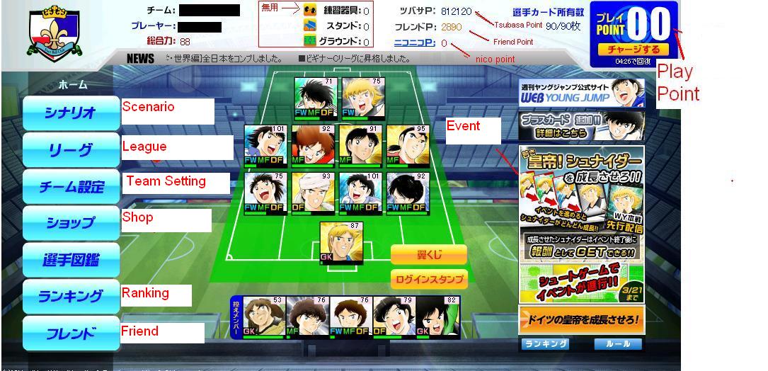 League -> 有Dream League(打玩家,升班时有奖), Friend League(赢左有3friend point,每100fp可以抽一卡), Tsubasa League(可以重打scenario赢左既队,赢左有机会抽队d球员,抽卡出现率系大概1/5)