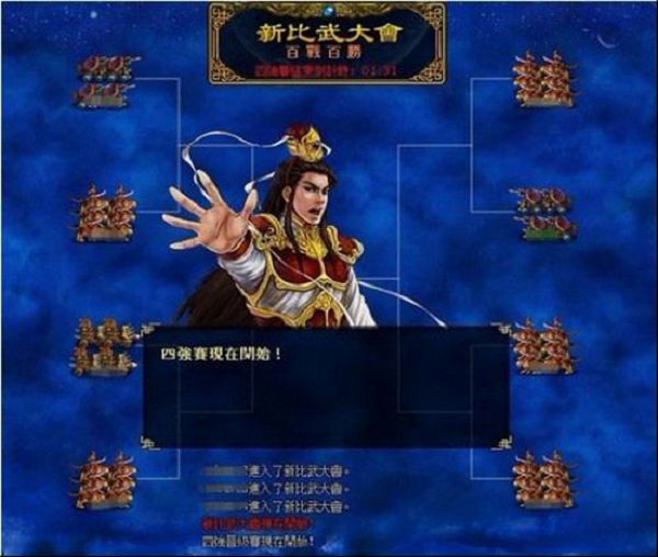每天的 20:00 准时开启比武的报名,玩家只要点击“比武”图示,进入报名介面,点击“参加比武”按钮完成报名,报名时限为 10 分钟。进行比武的报名人数需要达到 8 人才可以进行比赛,满员为 32 人。在满员的情况下,分别是 16 强赛、8 强赛、4 强赛、半决赛和决赛一轮一轮晋级,剩下最后一名玩家为冠军。