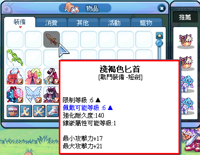 随著等级逐渐提升,遭遇到的怪物将越来越强大,旧的装备已不足以对抗,此时必须将装备进一步升级,装备升级后能力值提升,再强大的敌人也不足为惧!现在马上就来强化吧!首先打开道具栏后点选装备升级打开装备升级介面,接著放入欲升级的装备和升级所需的材