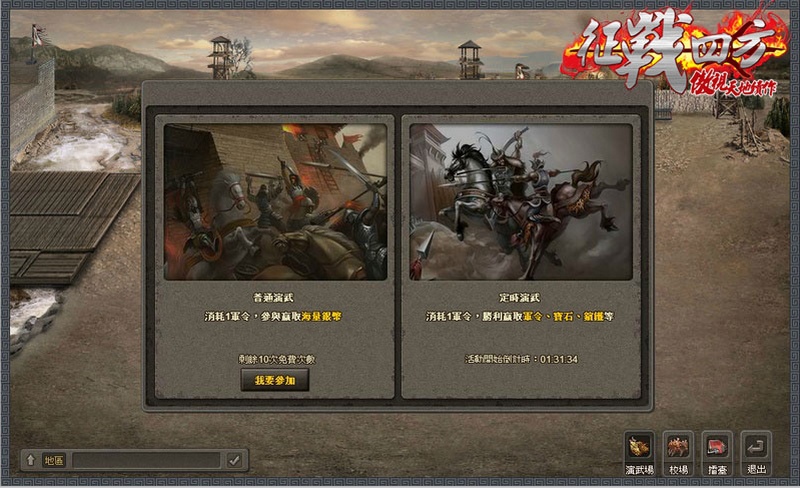 进入《征战四方》后,建议玩家先随著新手任务展开征战大业,快速的新手任务将协助玩家更了解游戏系统、环境!熟悉完整个游戏模式后,即进入最刺激的征战大业。进入游戏后第一个关卡为“祀水关之战”,镇守关内最强大的将领为“华雄”,顺利闯关后玩家等级不但达到 LV.8,还可开启“军团”及“部队”介面。军团介面一旦开启,玩家可随意选择强大军团加入,与盟友共同进行征战大业,增添游戏乐趣;而部队介面,则完整提供玩家查询武将资讯及如何排兵、布阵,对后续闯关有很大的助益。